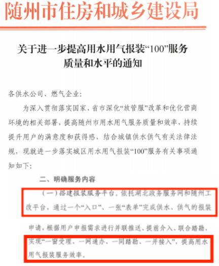 隨州市出臺(tái)用水報(bào)裝相關(guān)文件