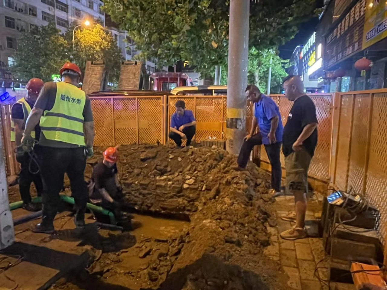 “管道早一分鐘搶修好,市民就早一分鐘恢復(fù)用水。沒有條件創(chuàng)造條件也要上!”針對現(xiàn)場情況,周新和他的“黨員突擊隊”隊員們憑借多年來積累的豐富經(jīng)驗,制定了靈活有效的搶修方案。周新身體力行,突擊隊員們分工協(xié)作,搶修工作有條不紊地展開:關(guān)閉閥門、設(shè)置圍擋、清除覆土、查找漏點、抽排積水、修補管道、試壓通水……